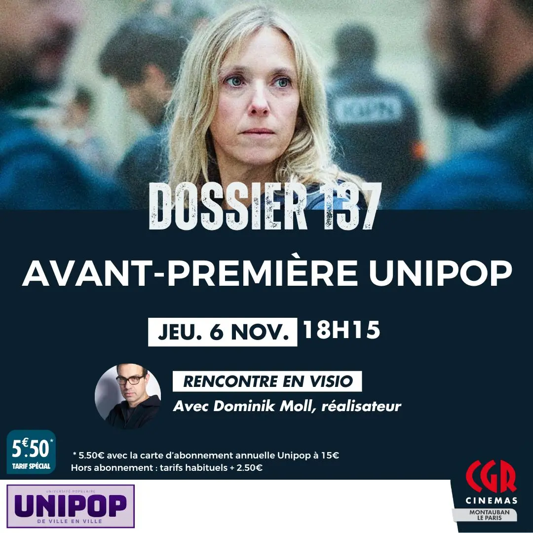 A screening proposed by Unipop from city to city, with the retransmission of a MEETING WITH THE DIRECTOR DOMINIK MOLL.