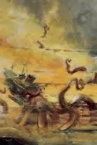 Grains of Sand is the artistic fusion of two painters bound by a deep connection, yet diametrically opposed in their sensibilities and approaches. In the abstract spaces painted by Edd, Skopit conjures fantastical worlds. Myths linked to the marine world play a significant role in this collaborative universe.