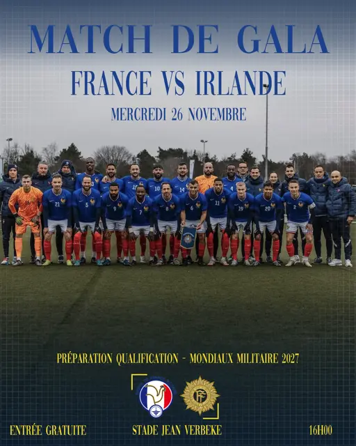 On Wednesday, November 26, a preparatory match for the 2027 Military World Championship will take place, pitting the French military team against the Irish military team.