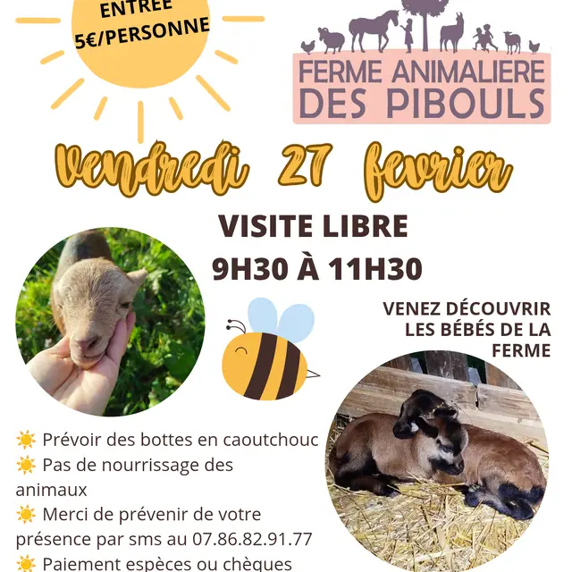 Come and discover the farm animals during a self-guided visit from 9:30 am to 11:30 am