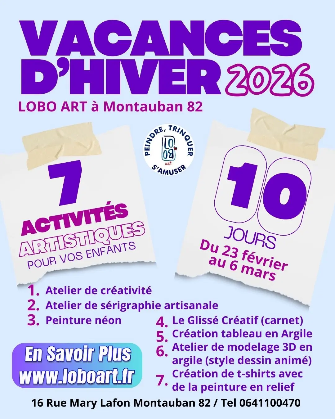Del 23 de febrero al 6 de marzo, ¡regala a tus hijos una experiencia creativa única en LOBO Art! Cada día, una nueva técnica para explorar, divertirse y crear.