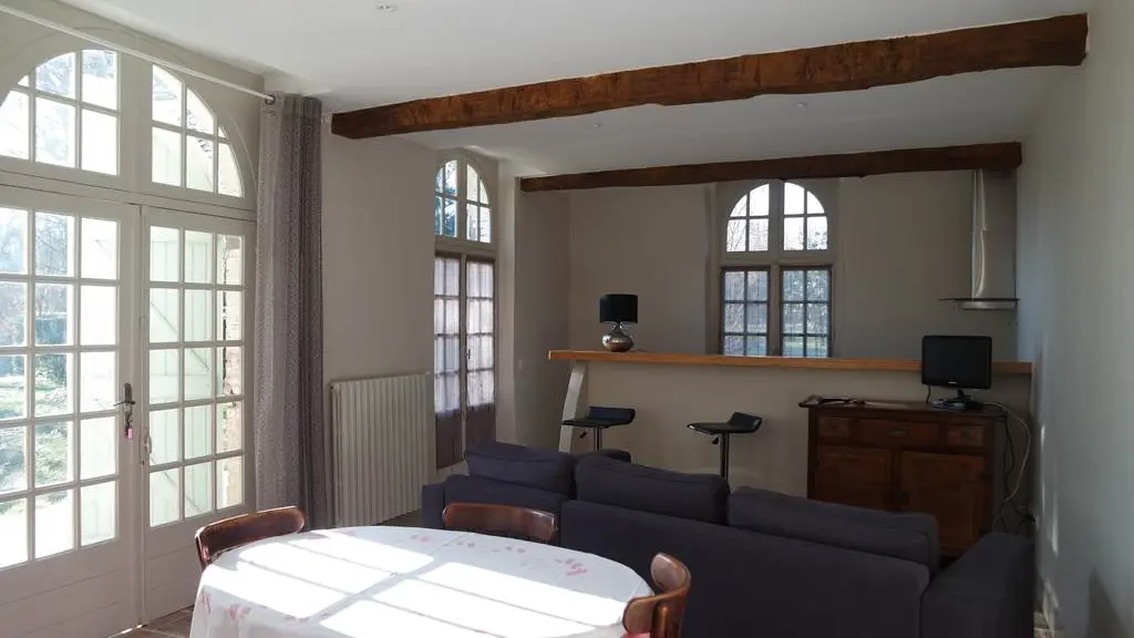 El alojamiento incluye: 1 sala de estar con área de cocina (refrigerador, horno eléctrico, placa vitro-cerámica, capucha purificadora, lavadora, tetera, cafetera, tostadora, microondas), un área de salón (sofá BZ, TV) y TV) y Una zona para dormir con 1 cama 140. Un baño con WC. Terraza de 25 m² con muebles de jardín, mesa de ping-pong, barbacoa y tomas del sol. Tierra boscosa. Natación con calefacción 11x6m para compartir con propietarios e inquilinos. Estacionamiento. LOISIRS CERCADOS: Pesca (Le Teschou): SP, Horses Stop € 25 / Noche / caja, piscina: 2 km, tenis, cine, museos, golf: 5 km.