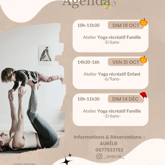 Yoga recreativo para familias de 3 a 6 años y niños de 6 a 9 años
