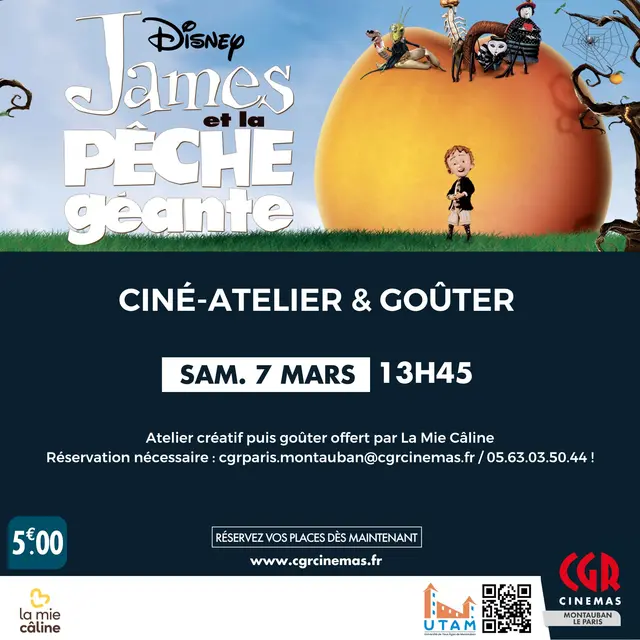 Réservation nécessaire pour participer à l'atelier et au goûter, afin que nous puissions préparer le matériel nécessaire : 05.63.03.50.44 / cgrparis.montauban@cgrcinemas.fr