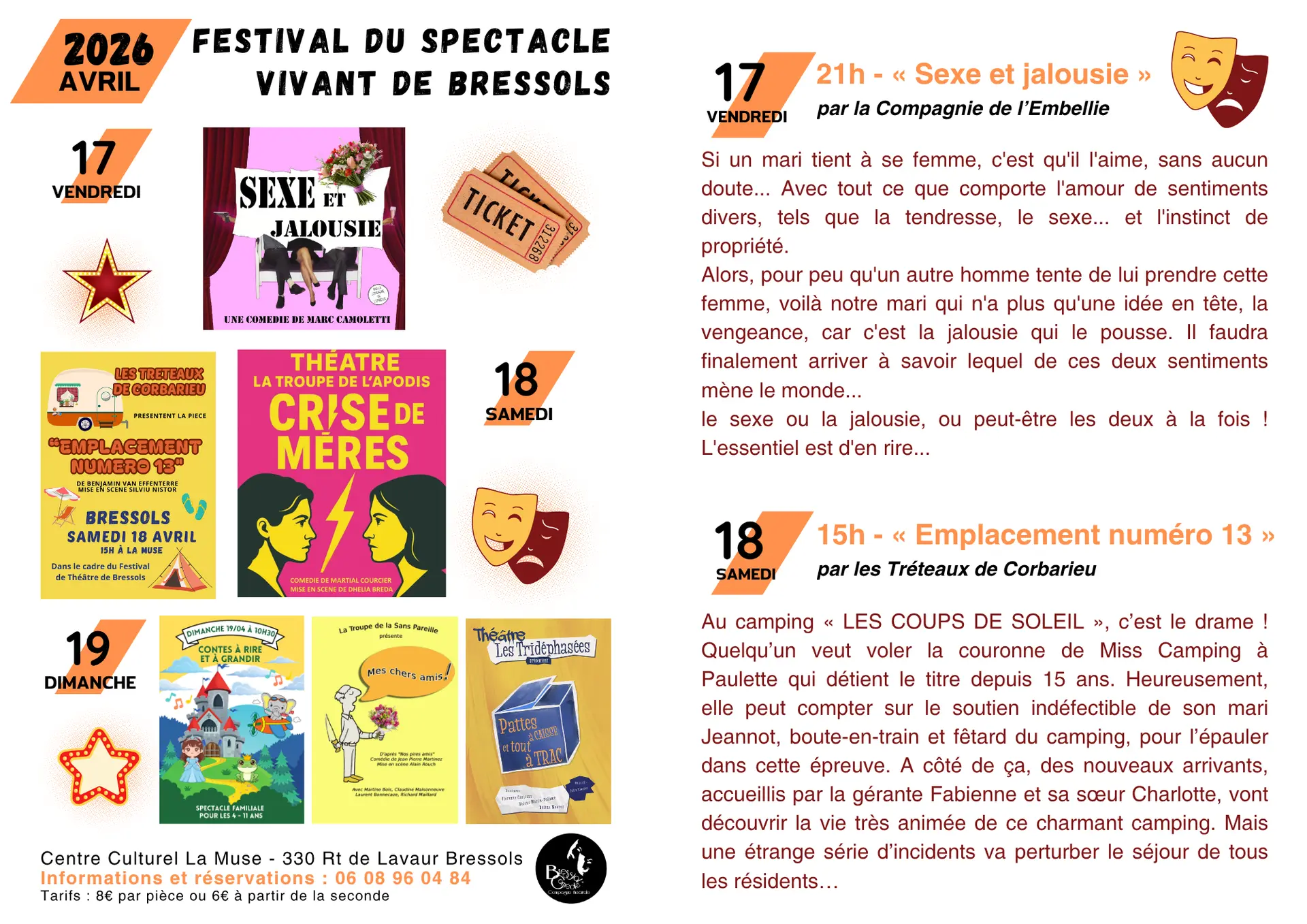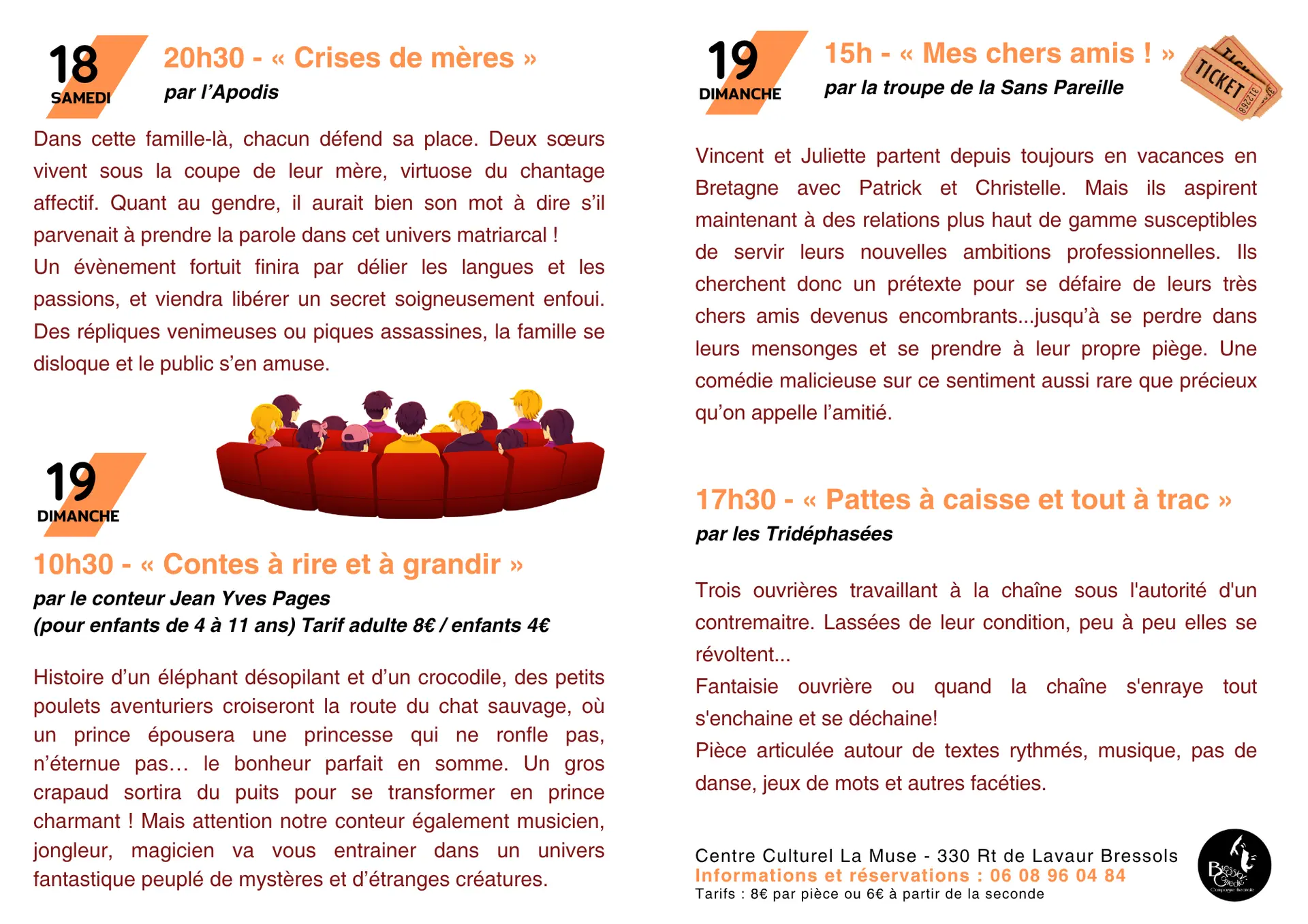 Venez nombreux partager des moments de rires, d'émotions et de spectacles inoubliables !