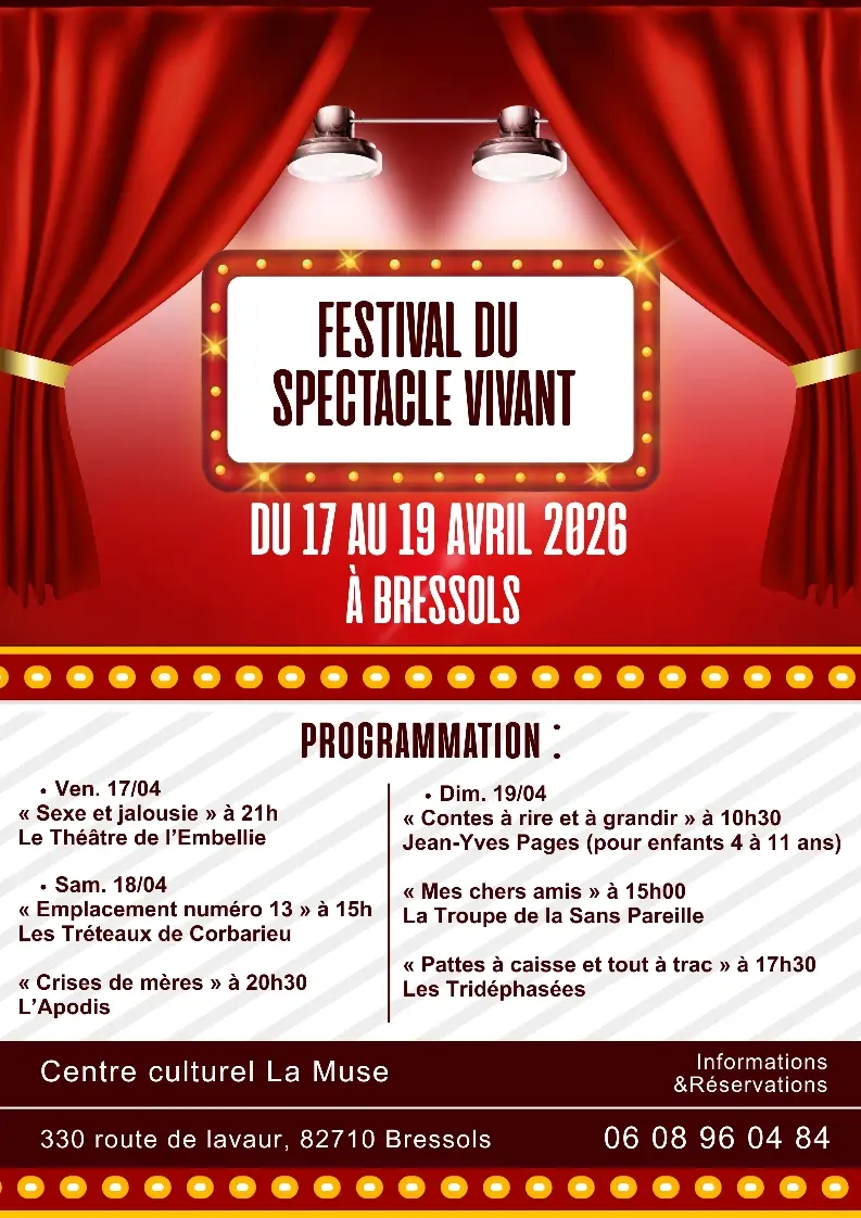 Du 17 au 19 avril 2026, plongez dans l'univers captivant du théâtre et des arts de la scène au Centre Culturel La Muse !